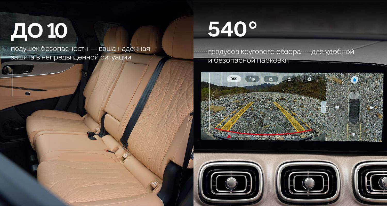 До 10 подушек безопасности, включая центральную — защита в трёх измерениях.